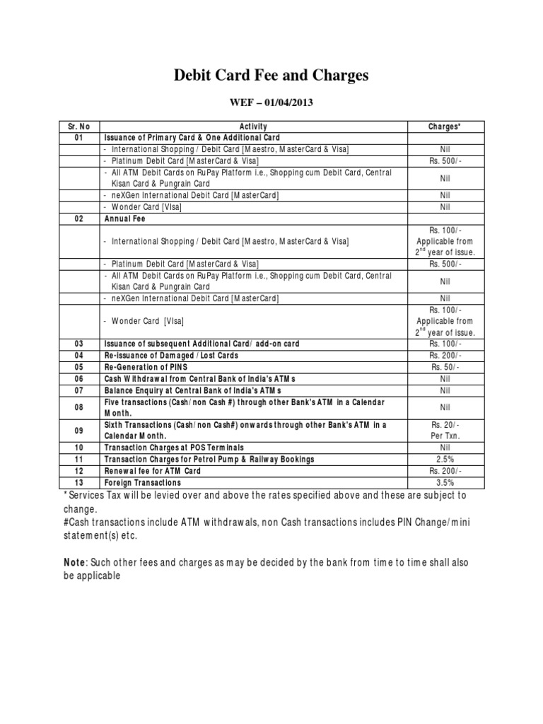Cbi Debit Card Fee And Charges - Debit card generator allows you to generate some random debit card numbers that you can use to access any website that necessarily requires your debit card details.