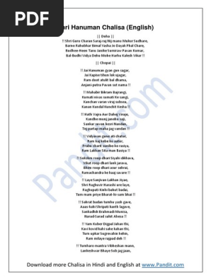 Hanuman Chalisa English Pdf - Aur manorath jo koi lawe, soi amit jivan phal pawe. Hanuman Chalisa English Pdf - Hanuman chalisa in english translation.