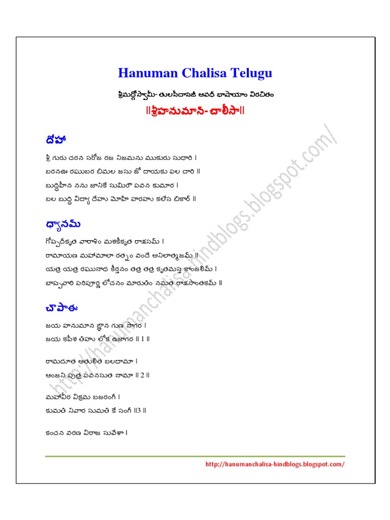 Hanuman Chalisa Telugu Pdf - Hanuman chalisa telugu ttd in telugu languagefull description. Hanuman Chalisa Telugu Pdf - You can download hanuman chalisa pdf in english here.