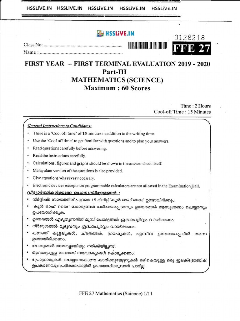 Hsslive Plus One Previous Year Question Papers And Answers Kerala A Plus Topper - The notification and time table for the conduct of first and second year higher secondary examinations march 2020 published.