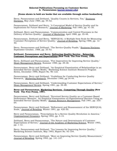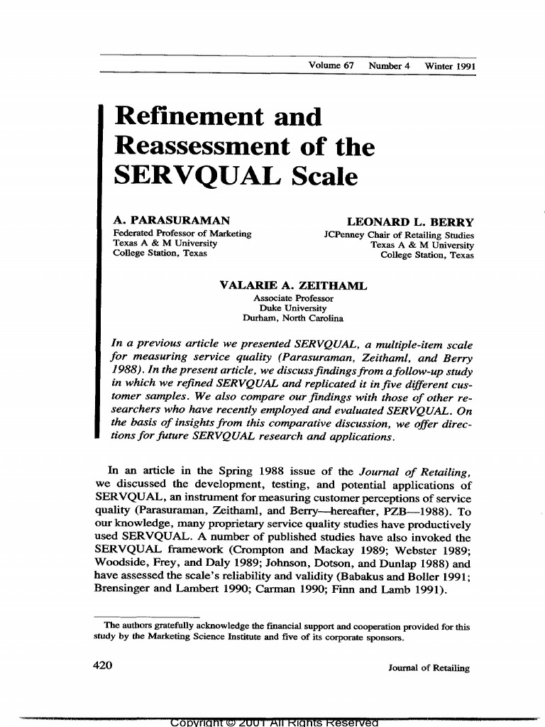 Parasuraman Zeithaml And Berry 1988 - Integrating customer focus across the firm. Parasuraman Zeithaml And Berry 1988 : Va zeithaml, mj bitner, dd gremler.