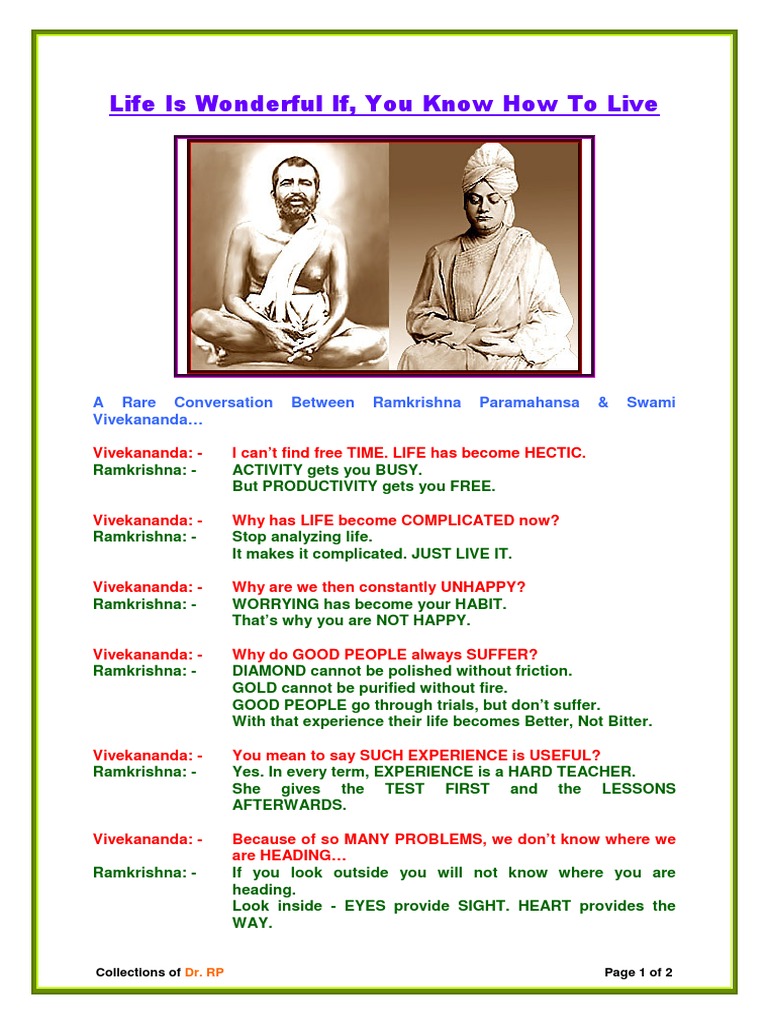 Conversation Between Ramkrishna Paramahansa Swami Vivekanand - View ramakrishna paramahamsa research papers on academia.edu for free.