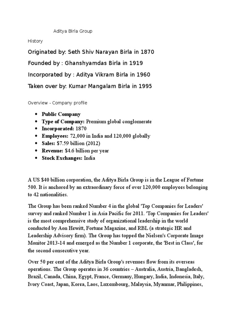 Birla Group Case Ebm085a05 Rug Studeersnel - In1919 ghanshyam das birla, grandson of shiv narayan birla, sets up the first birla jute mill in west bengal.