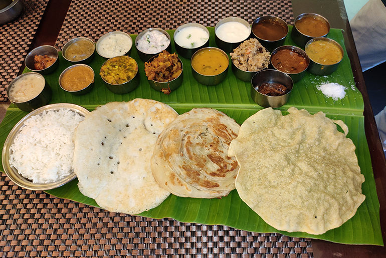 South Indian Thali Images : Their typical south indian thali is complimented by the quintessential banana leaf and food that comes with a side of desi ghee, for the purists.